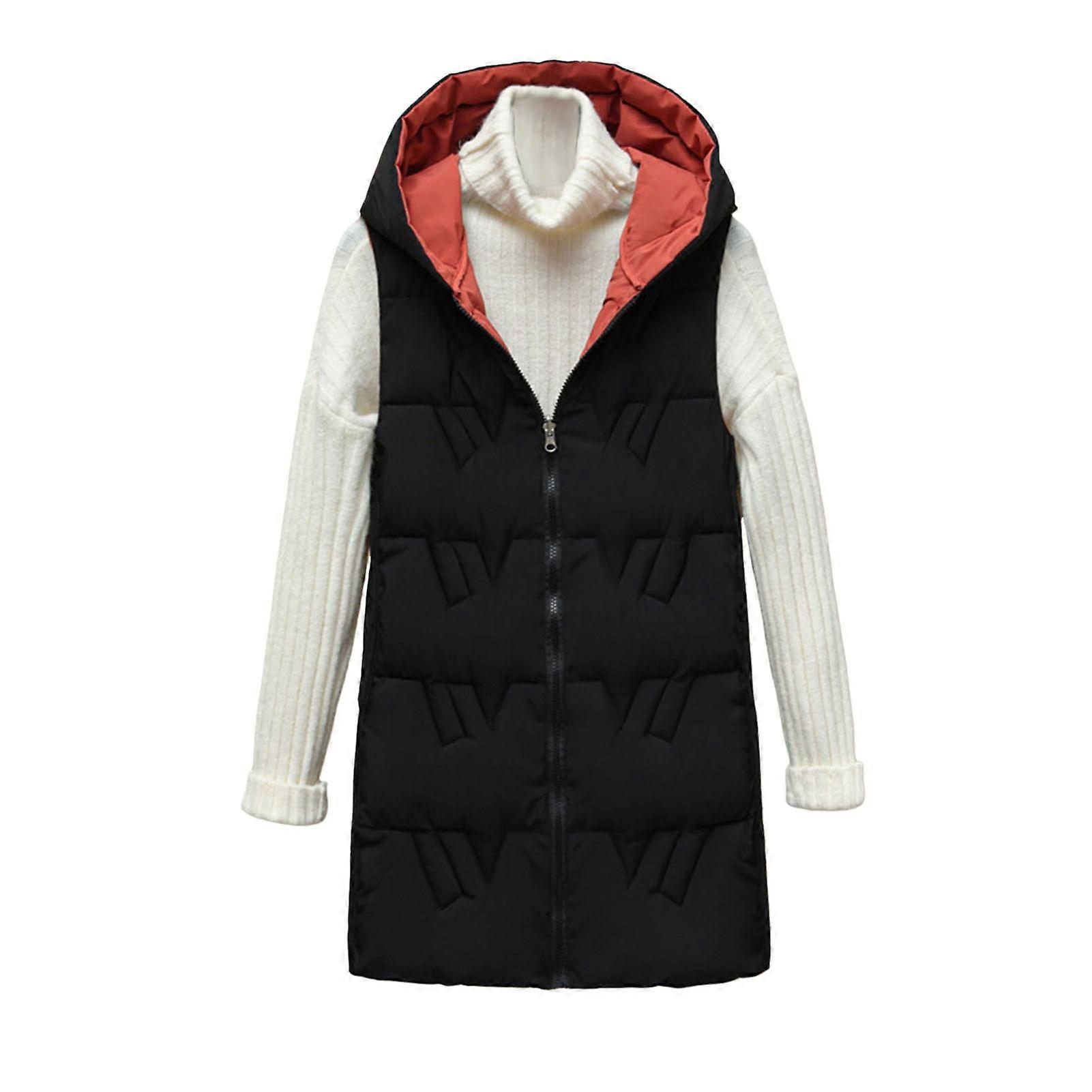 Winter Women Waistcoat Thickened Padded Zipper Closure Hooded Slim Fit Sleeveless Solid Color