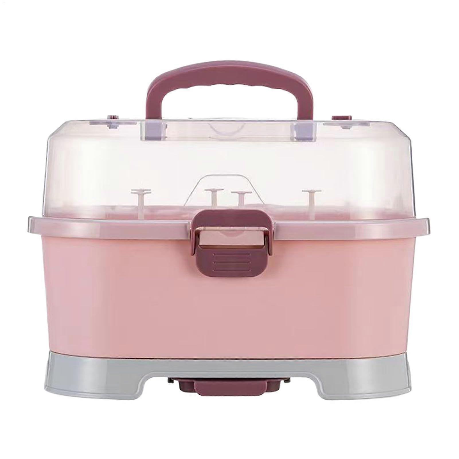 Baby Bottle Organizer with Large Capacity DustProof Lid, Removable Compartments, Nursery and Fridge Pink