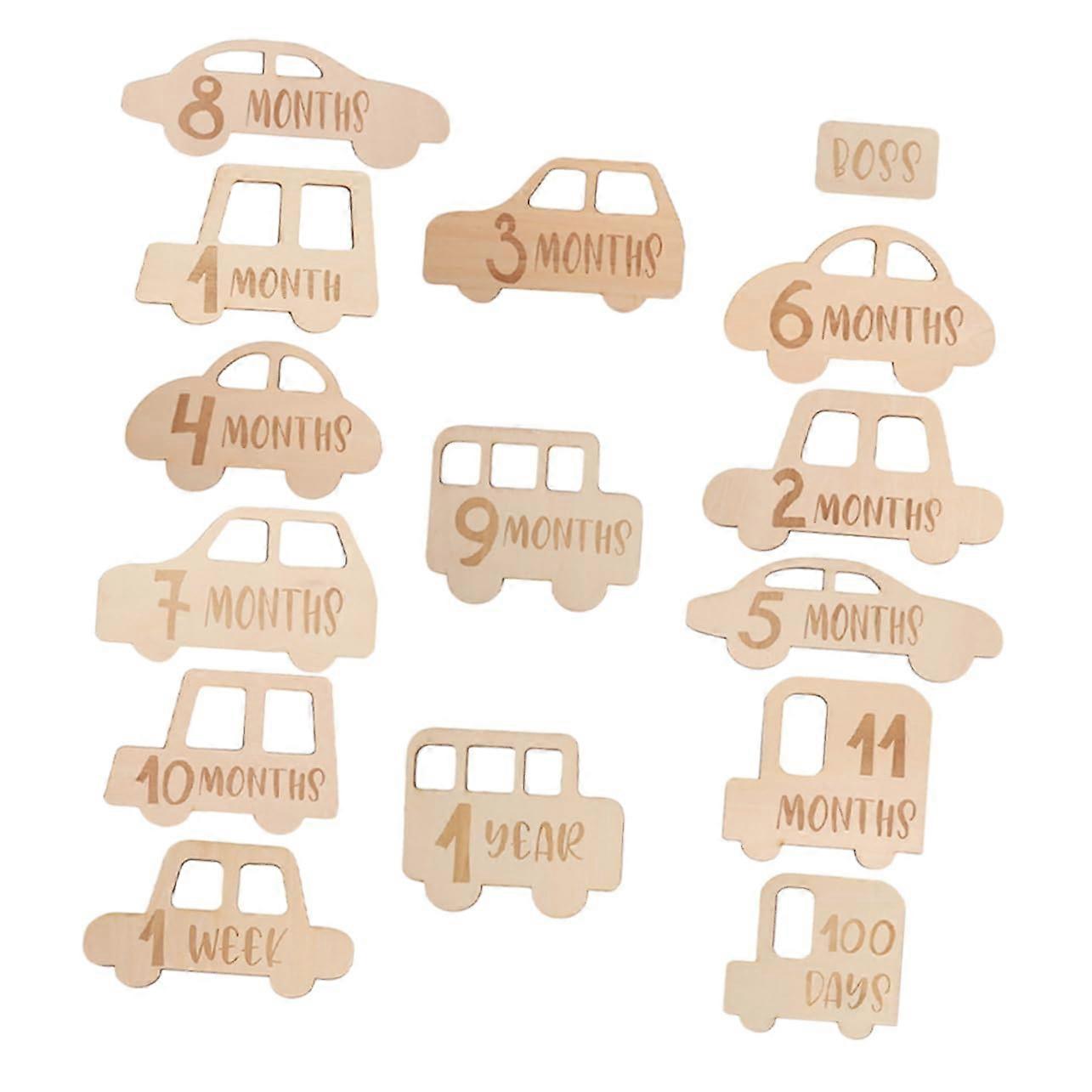 Wooden Milestone Cards Car Shape Set for Baby Monthly Growth Tracking and Baby Shower Keepsake