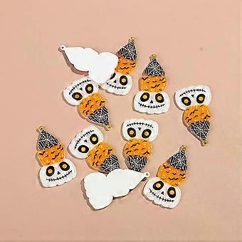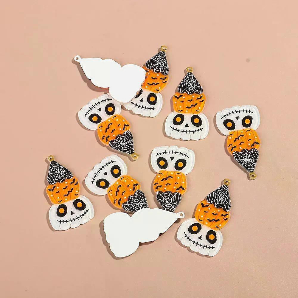 10pcs/lot Halloween Spooky Charms Cute Ghost Pumpkin Acrylic Print Pendant for DIY Jewelry Making Necklace Earring Accessories