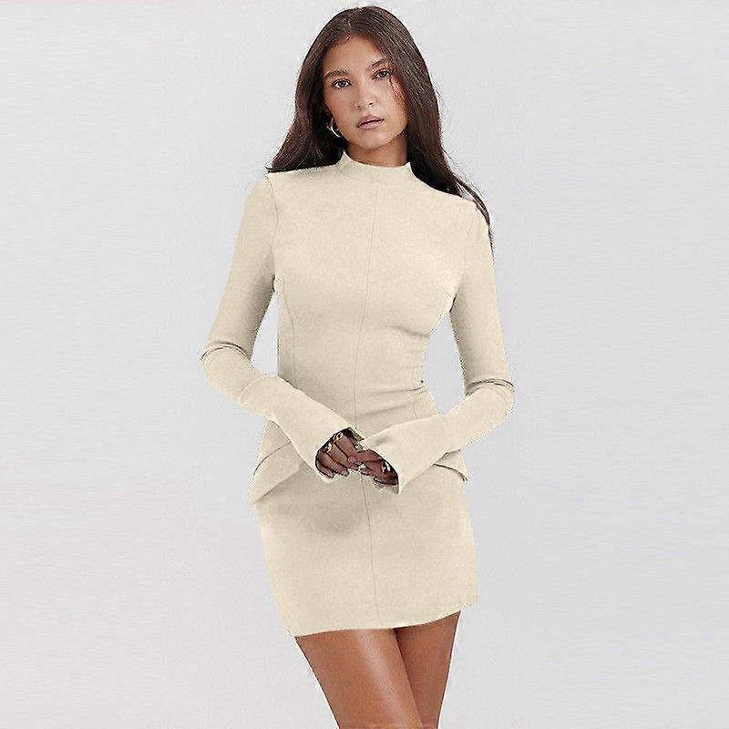 Spring Fashion: A Stylish And Elegant Long-Sleeved Dress With A Flattering Skirt For Women
