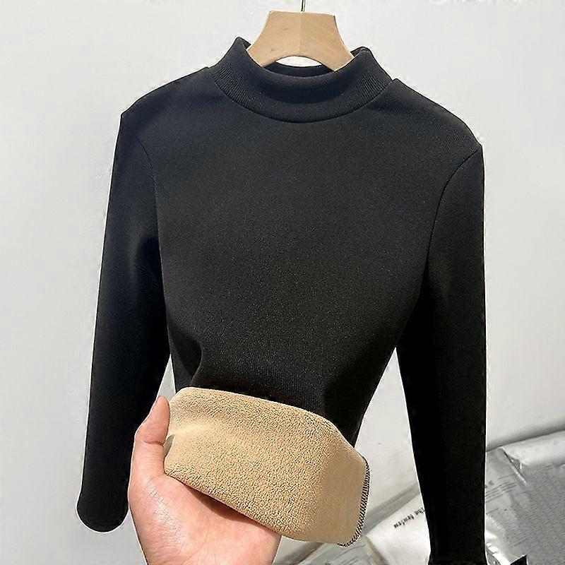 Fashionable Layered Outfit: Slim-Fit Knitted Top With Half-High Collar, Fleece-Lined Thermal Top, And Long-Sleeved Women's Autumn/Winter Tops