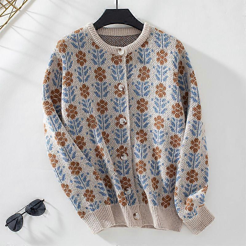 Floral Jacquard Sweater Cardigan For Women, Single-Breasted Long-Sleeved Knitted Sweater Coat For Autumn And Winter