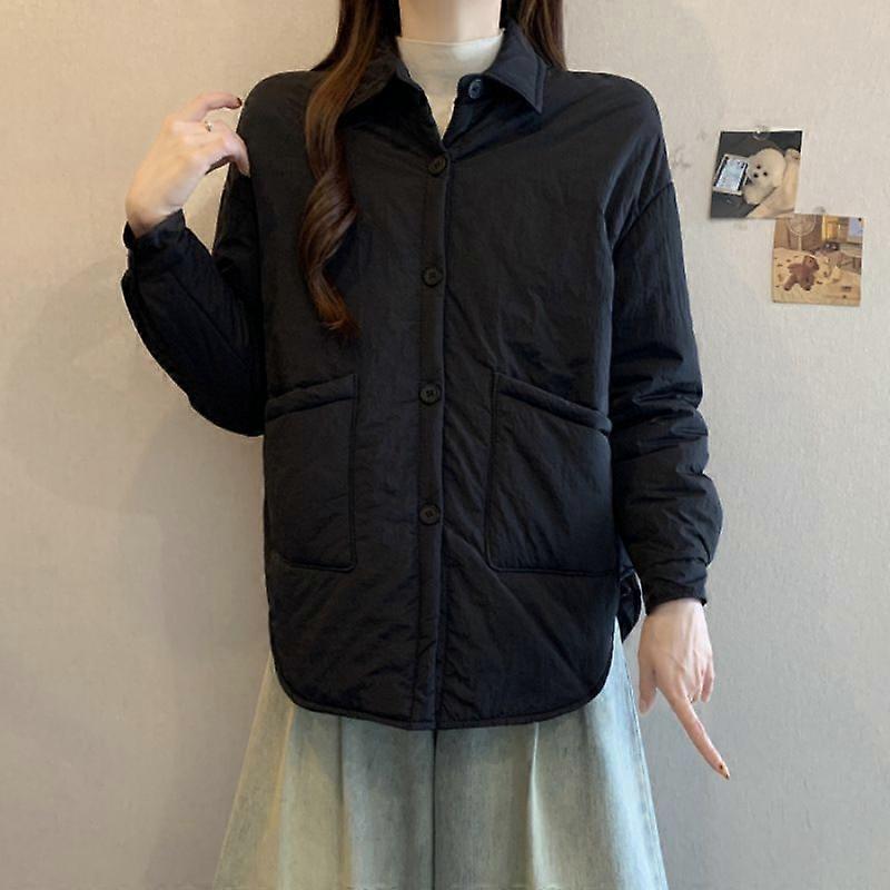 Winter Clothing Retro Hong Kong Stitching Large Pocket Thin Cotton Coat Cotton-Padded Coat Large Size Leisure Warm Coat Top