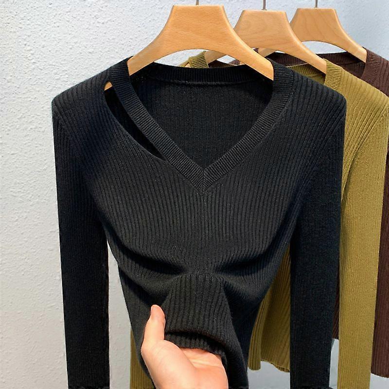 Women's Knit Base Layer With V-Neck Sweater Design, Waist-Tightening Inner Layer For Top Wear