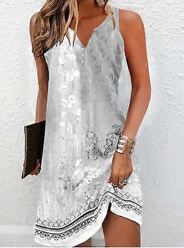 Ms.Nian's Floral-Print Single-Button A-Line Sleeveless Dress With V-Neck