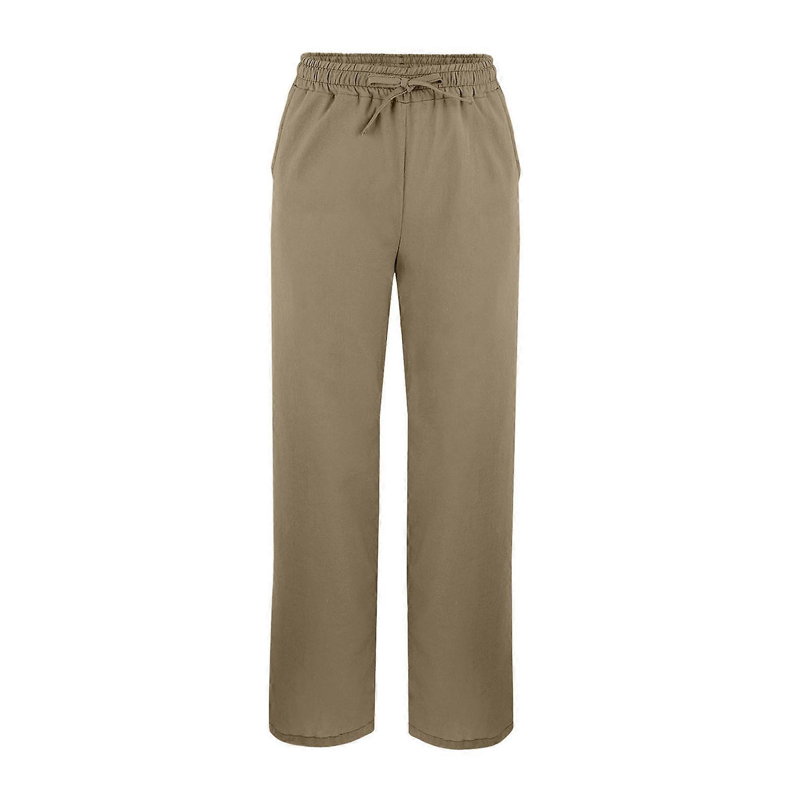 Women Pants Elastic Waist Adjustable Drawstring Mid-rise Casual Pants with Pockets Solid Color Split