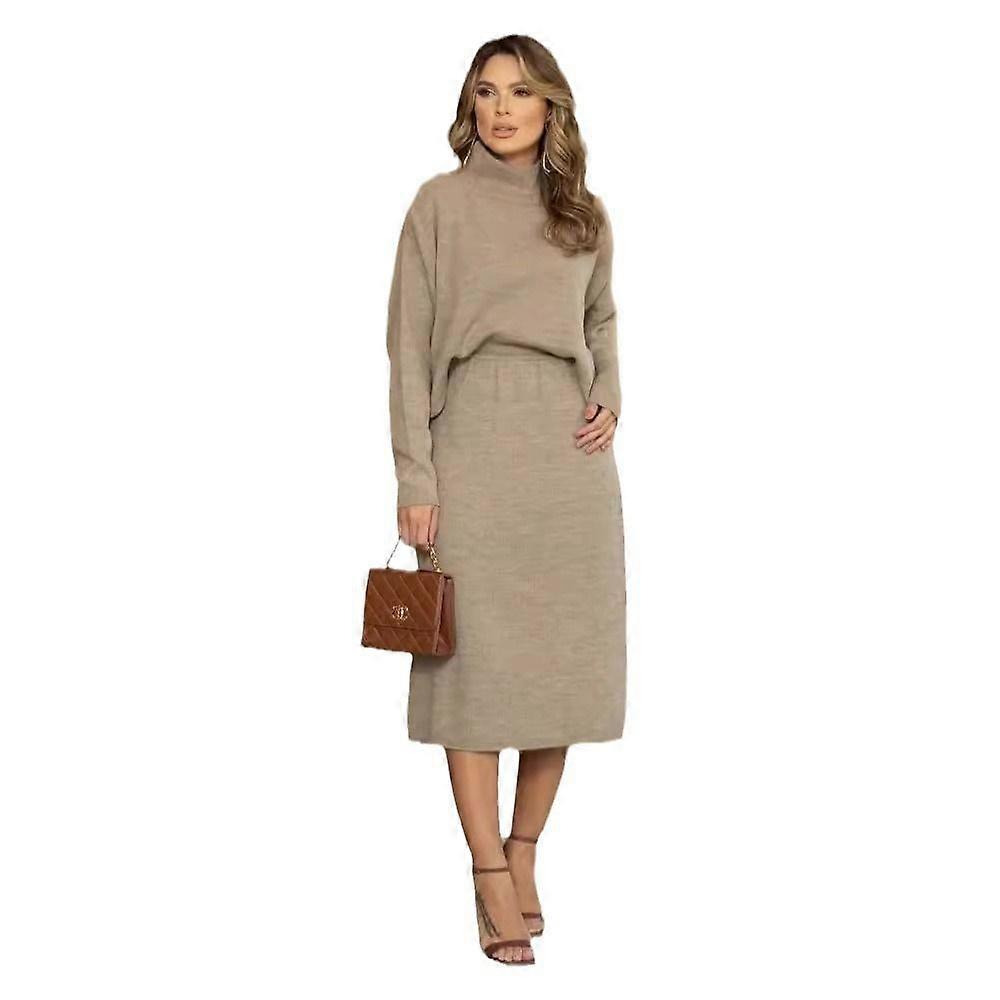 A Two-Piece Set Of Solid-Color Semi-High-Neck Top And Slimming A-Line Skirt For Autumn Women's Wear