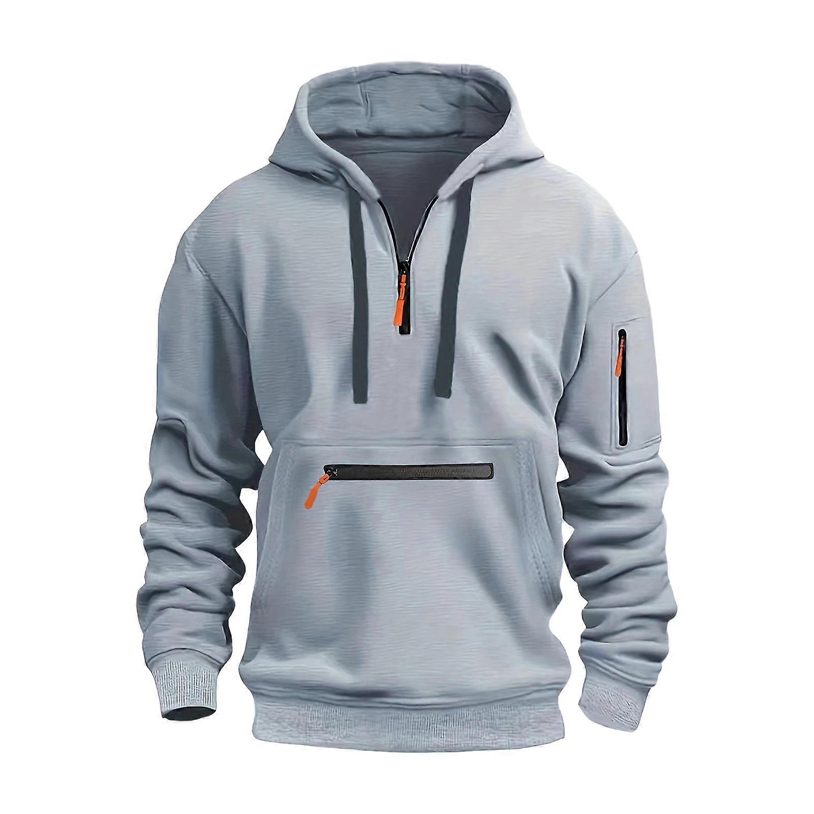 Material: Crafted from soft polyester fiber with added velvet for warmth, this men's hoodie is designed to keep you cozy and comfortable during the colder months. Features: This solid color hoodie for men boasts a stylish zippered hood, long sleeves, multiple pockets, and a convenient drawstring closure, offering both functionality and fashion-forward appeal. Style: Elevate your casual wardrobe with this versatile men's hoodie that effortlessly combines comfort and style. Perfect for outdoor adventures or laid-back days, this hoodie is a must-have staple. Pairing: Mix and match this hoodie with your favorite sports pants, jeans, or casual shoes for a relaxed yet trendy look that suits various occasions from leisure outings to daily activities. Suitable Occasions: Ideal for outdoor excursions, sports activities, casual outings, workdays, or simply lounging at home during autumn and winter seasons. This men's hoodie is a versatile piece that complements any wardrobe effortlessly. Description: Stay warm and stylish with this Men's hoodie made of soft and comfortable polyester fiber. The hoodie is designed with a zippered hood for a fashionable and versatile look. Featuring long sleeves, multiple pockets, and a drawstring, this solid color hoodie is simple yet versatile. Perfect for outdoor activities, leisure, work, or daily wear during autumn and winter. Pair it with sports pants, jeans, or casual shoes for a trendy and casual appearance. Stay cozy and fashionable in this must-have hoodie for men. Item Name: Hoodie Material: Polyester Gender: Men Style: Casual Length: Mid Length Size Type: Regular Season: Fall, Spring, Winter Collar: Hooded Sleeve: Long Sleeves Features: Multi Pockets, Zipper Decor, Loose Size Details: Size: M, Bust: 114cm/44.88", Length: 75cm/29.53", Sleeve: 66cm/25.98", Shoulder: 50cm/19.69" (Approx.) Size: L, Bust: 119cm/46.85", Length: 76cm/29.92", Sleeve: 67cm/26.38", Shoulder: 52cm/20.47" (Approx.) Size: XL, Bust: 124cm/48.82", Length: 77cm/30.31", Sleeve: 68cm/26.77", Shoulder: 54cm/21.26" (Approx.) Size: XXL, Bust: 129cm/50.79", Length: 78cm/30.71", Sleeve: 69cm/27.17", Shoulder: 56cm/22.05" (Approx.) Size: XXXL, Bust: 134cm/52.76", Length: 79cm/31.1", Sleeve: 70cm/27.56", Shoulder: 58cm/22.83" (Approx.) Notes: Please refer to our size chart and choose the right size. Due to the light and screen setting difference, the item's color may be slightly different from the pictures. Package Includes: 1 x Hoodie