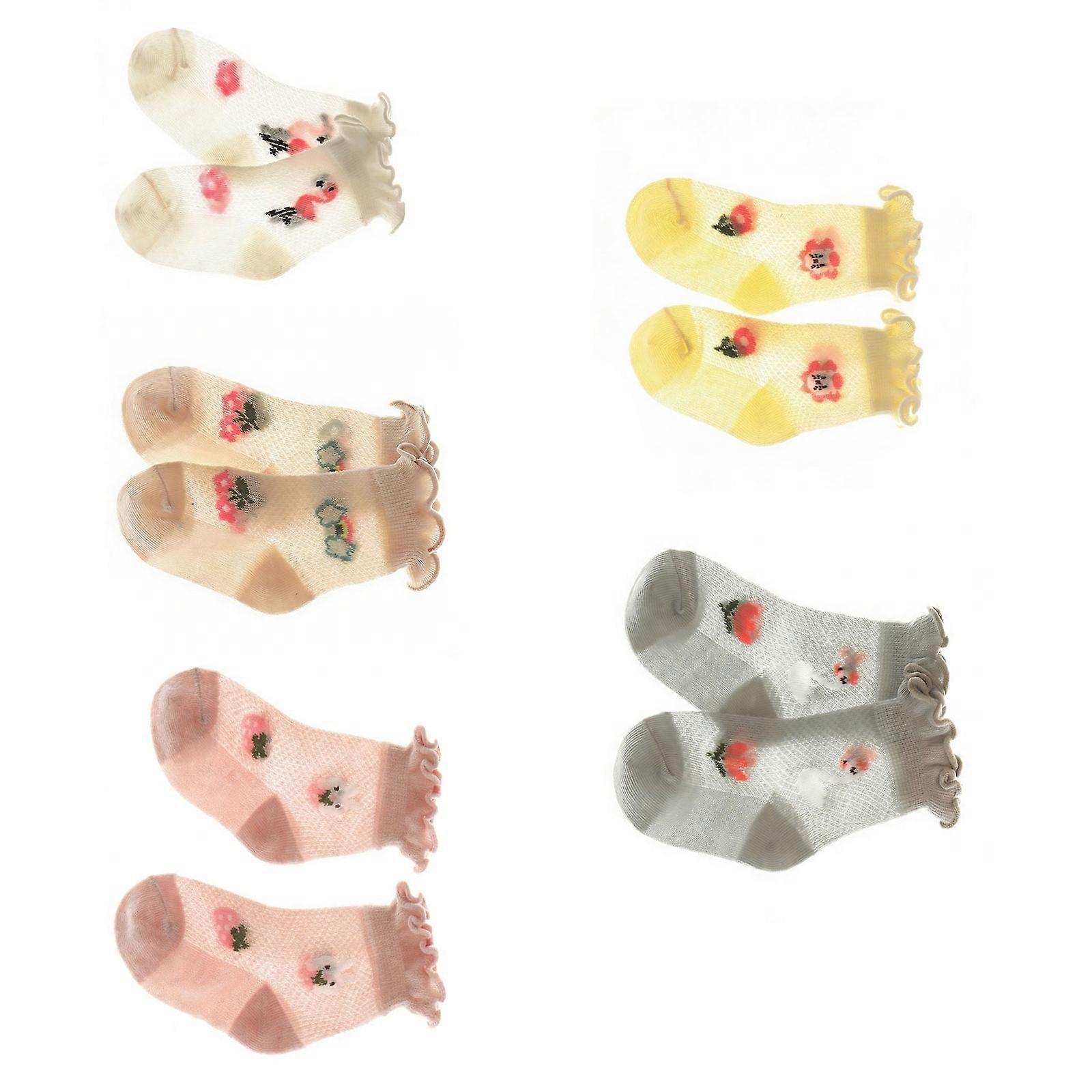5 Pairs Comfortable Summer Weight Children Socks Floral Accented UltSoft Breathable for Girls and Boys Age 0-6 Years Color random S