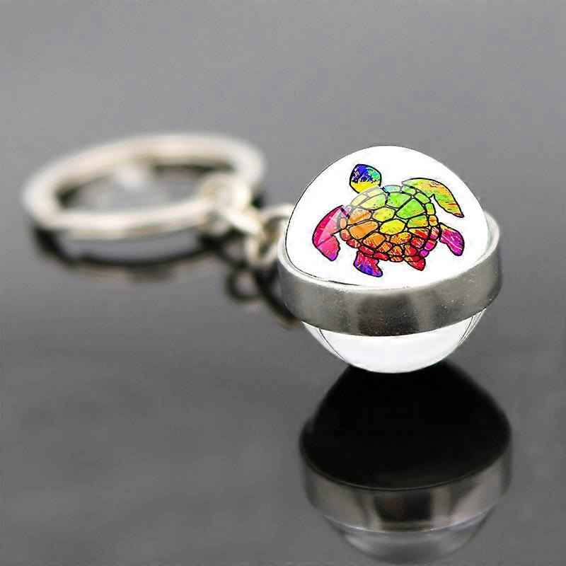 Rendered Colorful Turtle Keychain Pendant, Time Gem Double-Sided Glass Ball Pendant Keychain Charm