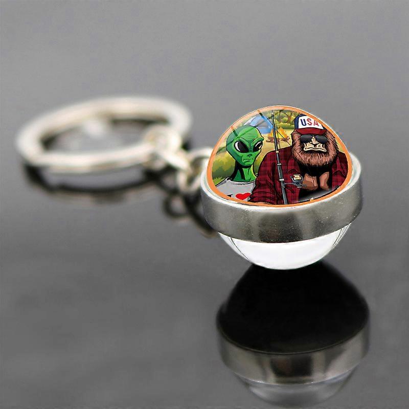 American Bigfoot keychain, Beer Brothers alien double-sided glass ball pendant keychain charm
