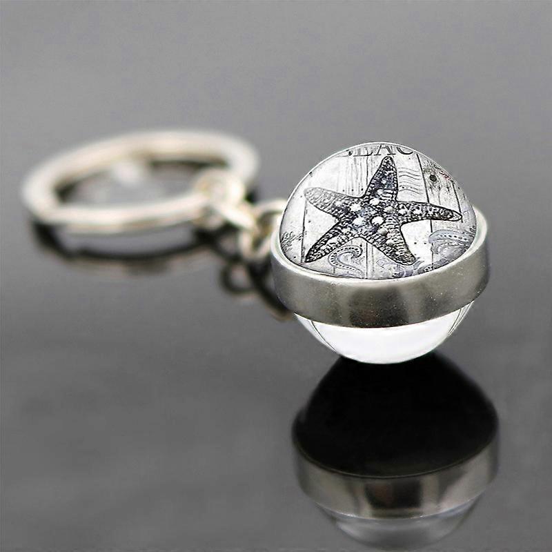 Vintage starfish and turtle keychain ornament, marine life double-sided glass ball pendant keychain charm