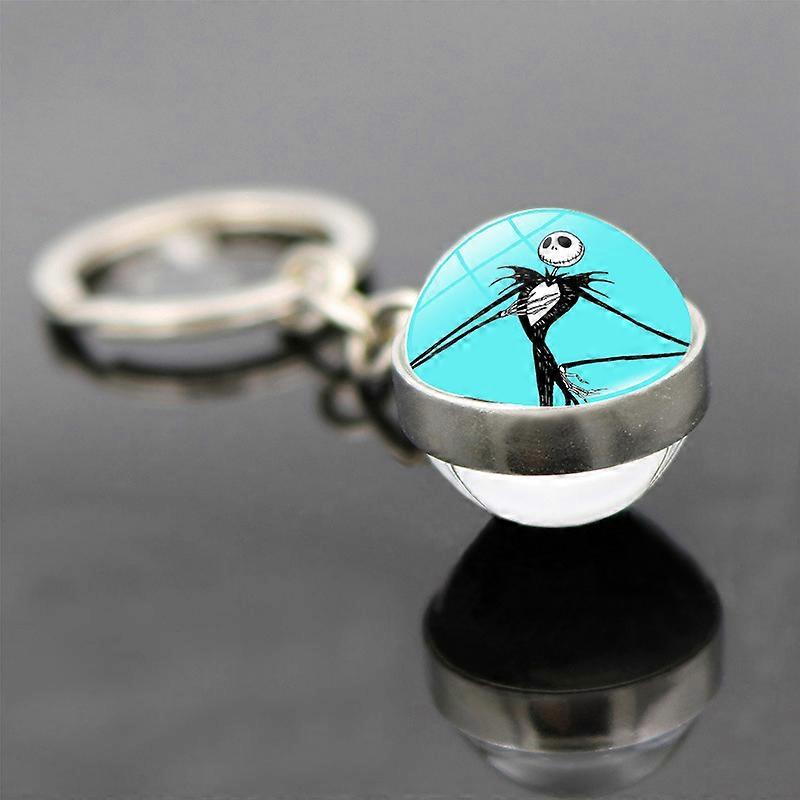 The Nightmare Before Christmas Keychain Charm, Jack and Sally Double-Sided Glass Ball Pendant Keychain Ornament