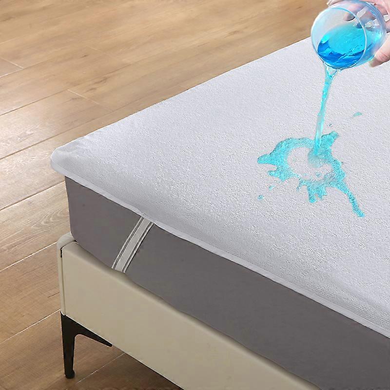 1pc Soft Lightweight Thin Mattress Cover with Elastic Bands, Waterproof Terry Cloth Fitted Sheet, Grey/White