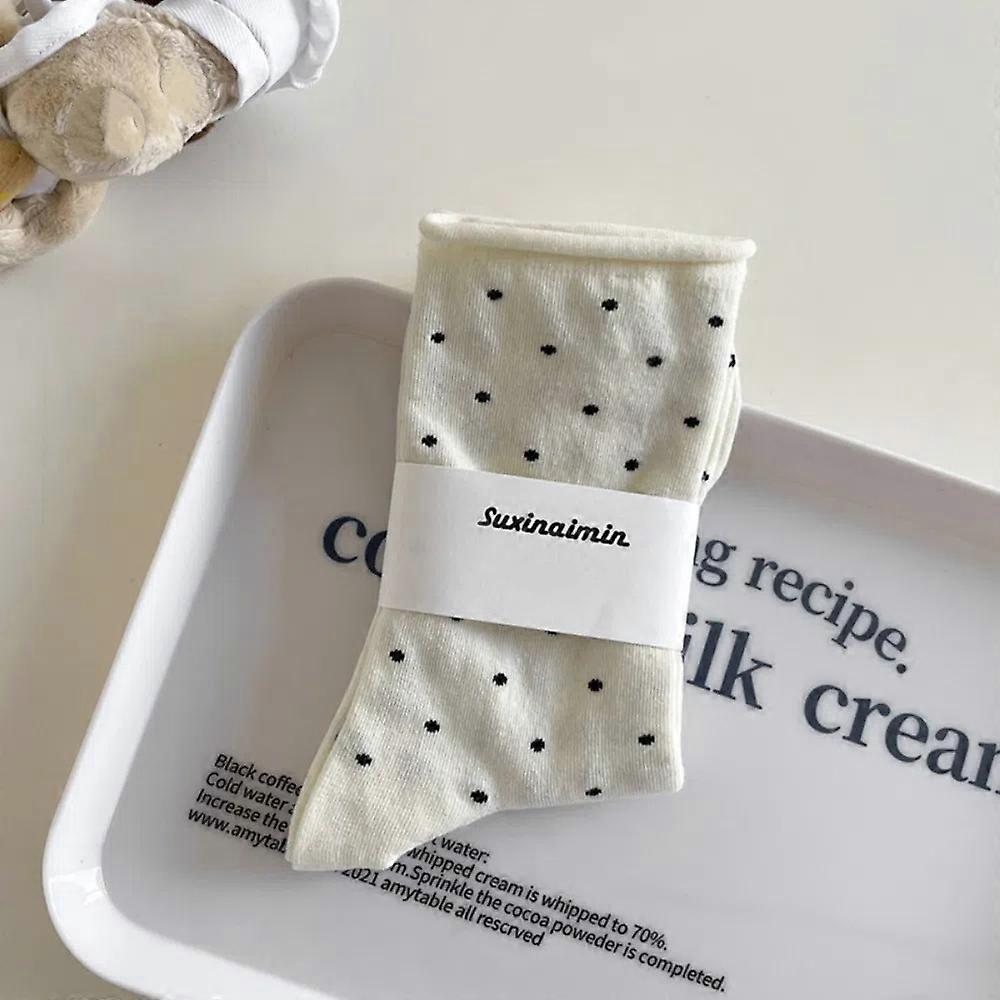 Fashion Comfortable Curled-edge Polka Dot Socks Thin Breathable Mid-Tube Socks Sweat Absorbent Women's Socks Autumn Winter