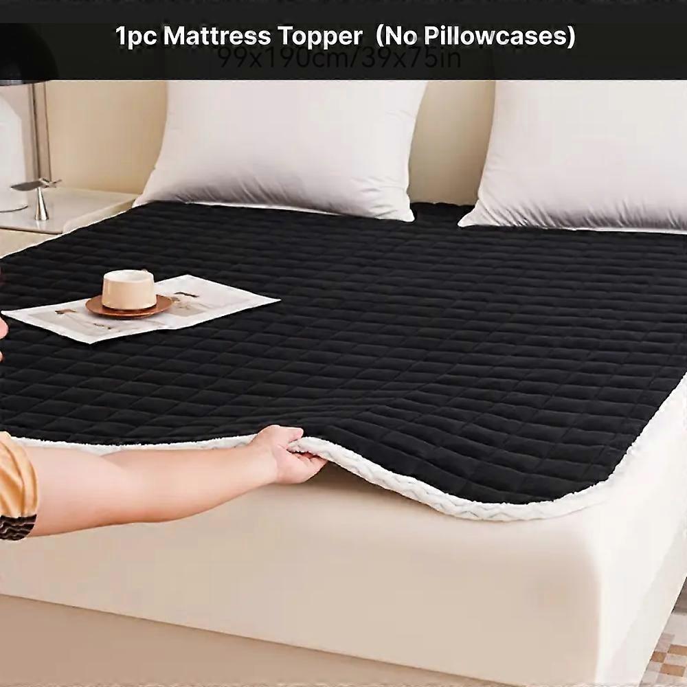 1pc Quilted Mattress Topper, Soft Velvet Milk Fiber Mattress Cover, Breathable Flannel, Anti-Slip, Machine Washable