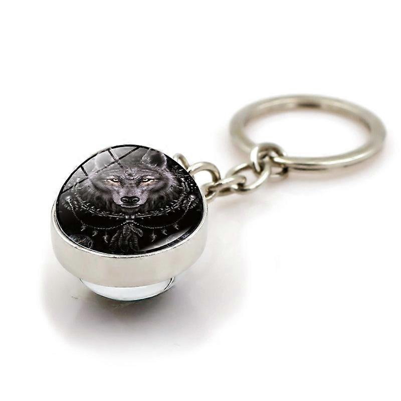 Dreamcatcher Wolf Keychain Time Gem Double-Sided Glass Ball Pendant Keychain Ornament