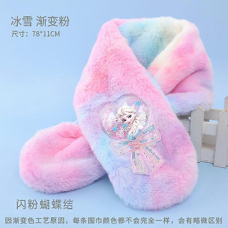 Disney Girl's Scarf Anna and Elsa Winter Keep Warm Plush Fur Gradient Color Kawaii Frozen Princess Elsa Neck Scarfs for Children