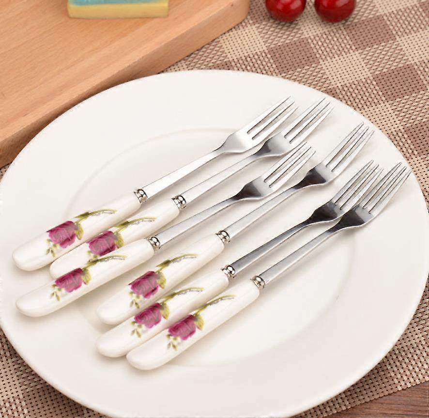 Stainless Steel Bone Fork, China Fruit Fork, Cake Dessert Fork, Fashion Tableware, 15mm, 6Pcs