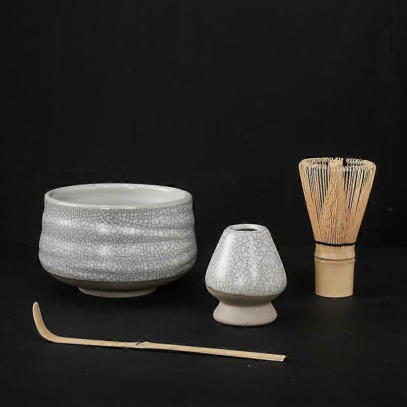 Matcha Tea cupSet with Bamboo Whisk, Scoop Ceramic Bowl, Traditional Indoor Handmade Tea-making Tools, Birthday Gifts, 4 PCs/Set