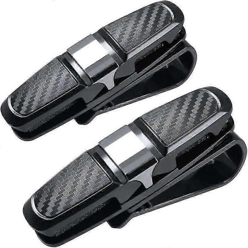 FUNCTION: This Sun Visor Glasses Holders enable to clip 2 pairs of sunglasses and an extra card. Keep your glasses away from dropping, scratching, missing, make it safer. NO EFFECT TO VIEW: Securely attaches to the sun visor, do not obstruct driver's view. FLEXIBLE: It can rotate 180-degree which allows you adjust the glasses vertically or horizontally. COMPATIBILITY: Fits all glasses and sunglasses, especially thicker ones. NO HARM TO GLASSES AND SUN VISOR: Soft material does no harm to arms of glasses and sunglasses. The clip is flat and a little bit wide, No marks left for sun visor.