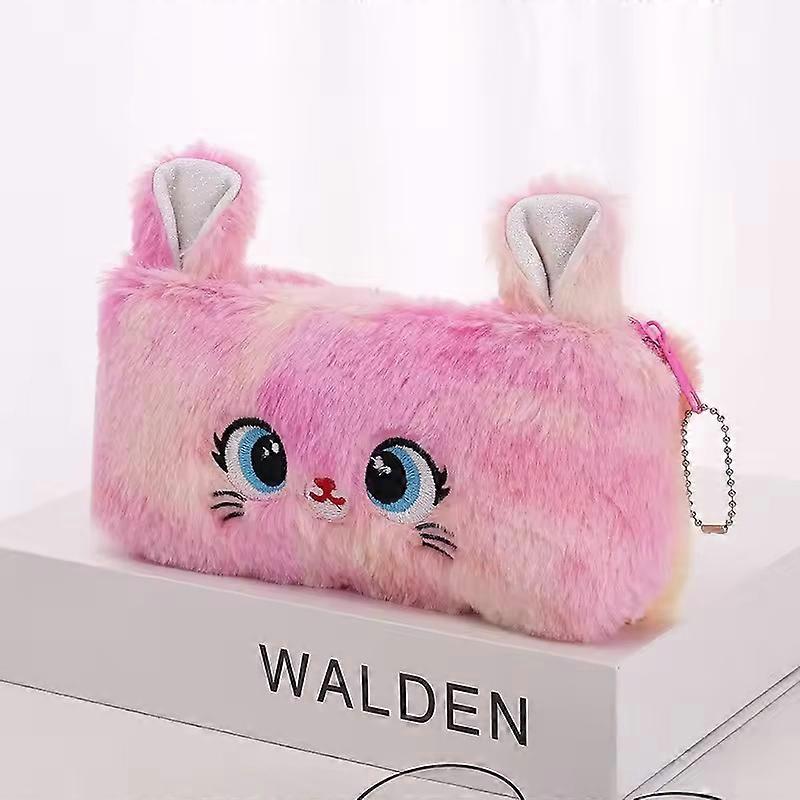 Kawaii Cat Large-capacity Zipper Pencil Bag, Beautiful Cartoon Creative Plush Pencil Bag for Girls Stationery Storage Bag