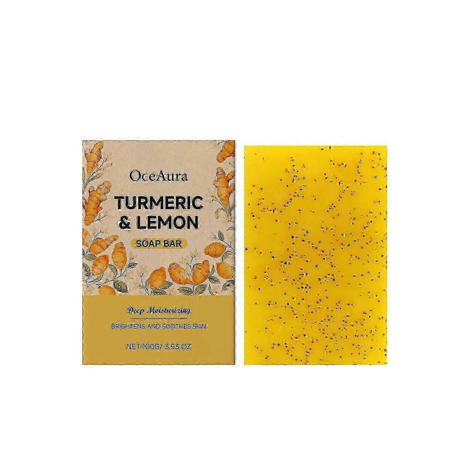 1pcs Lemon Turmeric Soap Bar, Dark Spot Removal, Skin Lightening with Honey, Face Body Underarms, SLS Free, Oily Dry Skin