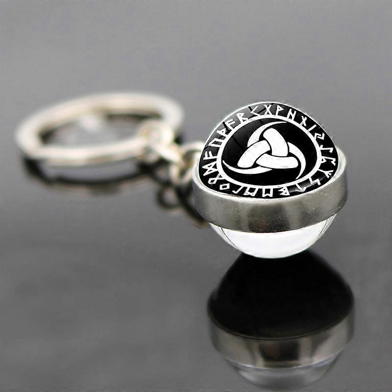Viking Rune Thor's Hammer Keychain Pendant for Men, Double-Sided Glass Ball, Viking Amulet, Keychain