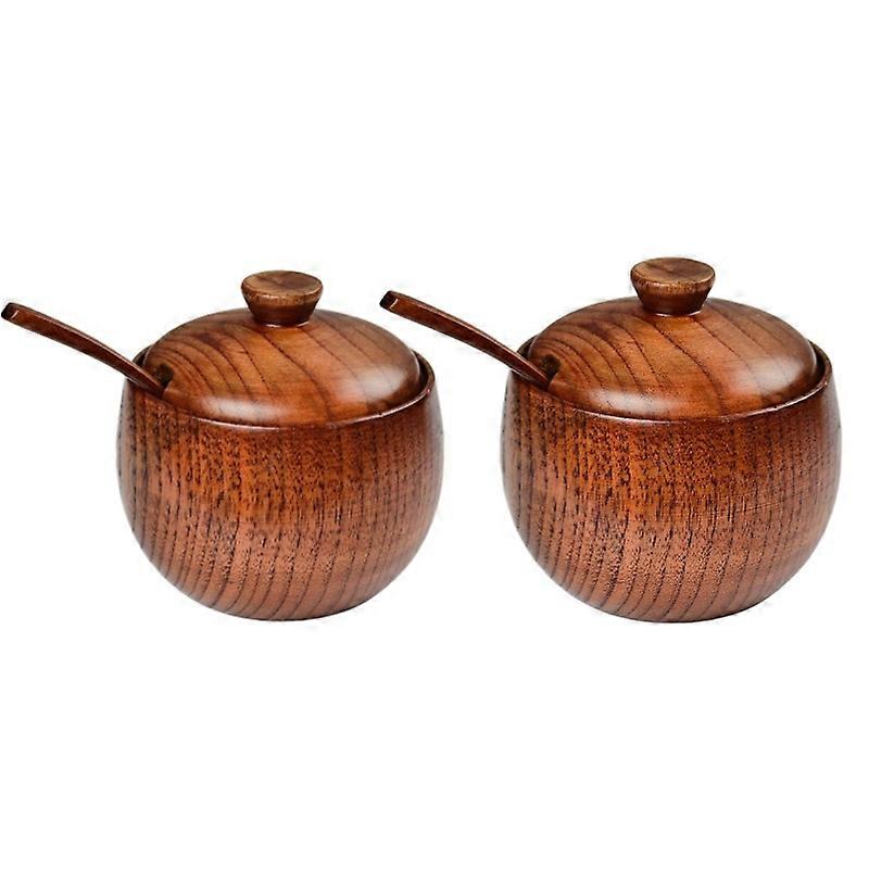 Natural Wooden Salt Cellar with Lid and Spoon Sugar Bowl Pepper Seasoning Container Holder Keeper for Kitchen Serving, Condiment
