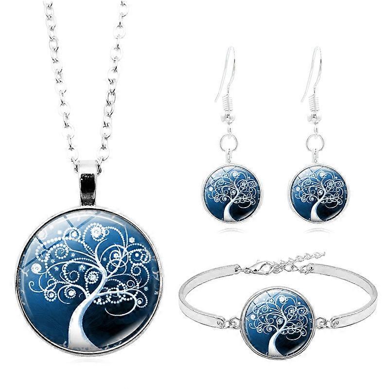 Tree of Life Time Gemstone Necklace Set, European and American Style Accessories, Fashionable and Unique Bracelet and Earring Jewelry Set