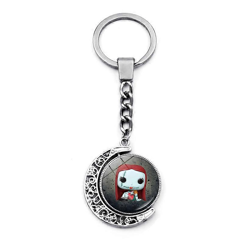 Christmas Nightmare Keychain Pendant Double-Sided Rotating Pendant Keyring Jack Sally Skull Jewelry