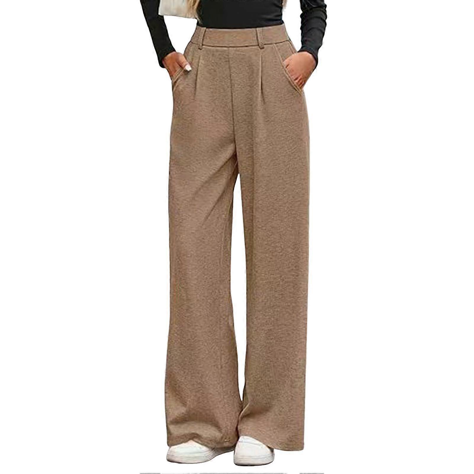 Women Pants Elastic Mid-rise Wide-Leg Loose Style Long Pants Autumn Winter Ribbed Casual Trousers
