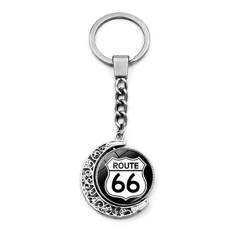 Route 66 sign keychain pendant, time gemstone double-sided rotating pendant.