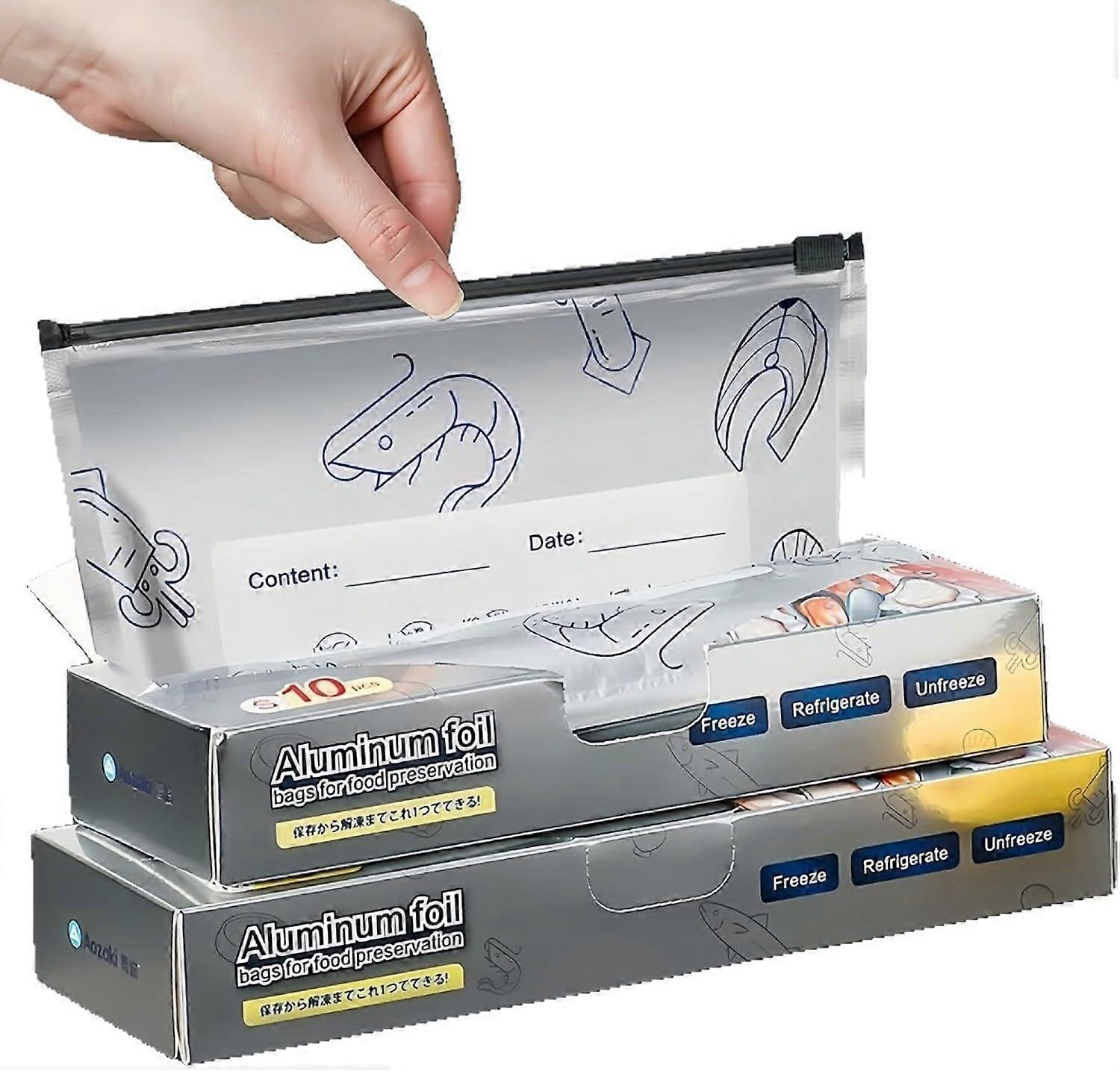 Reusable Aluminum Foil Bags, Freezer Safe & Leak Proof Stand Up Storage Bags with Zipper for Meat Seafood Vegetables, Heavy Duty BPA Free Food Storage
