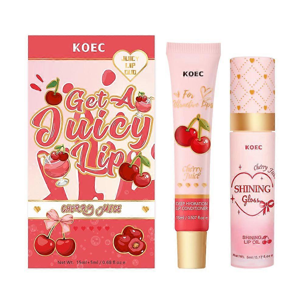 Lip Duo Set Juicy Lips Treatment with Lip Conditioner & Oil, Strawberry Gloss Finish, Deep Hydration, High Shine, Moisture, Smooth Soft Look, Lips Es
