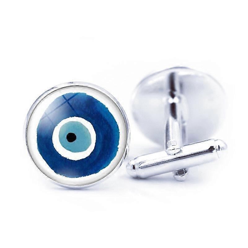 Turkish Evil Eye Cufflinks, Blue Eye Time Gem Silver Cufflinks, French Men's Shirt Accessories