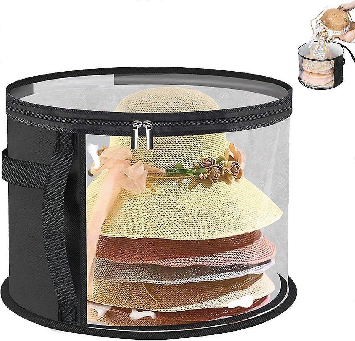 ING Extra Large Transparent Hat Organizer - Baseball Cap Organizer - Hat Box with Wide Brim and Handle (Black)