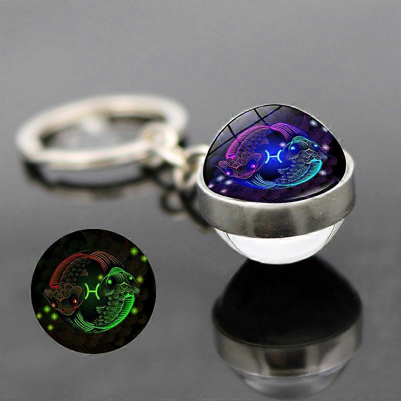 12 Zodiac Signs Glow-in-the-Dark Keychains for Students, Couples, Bag Pendants, Graduation Gifts, Metal Crystal Glass Balls