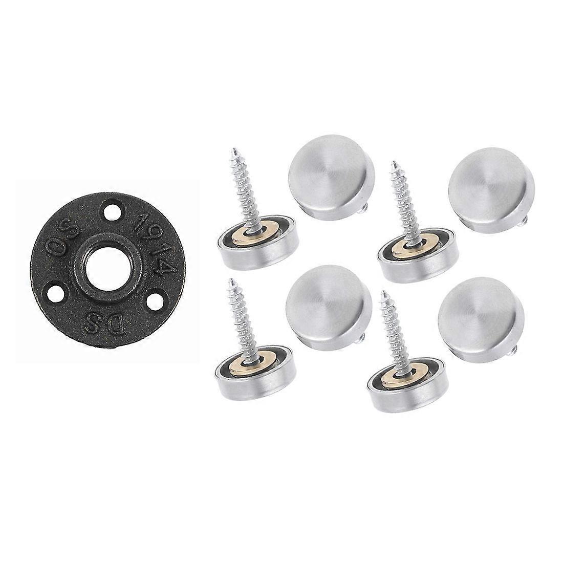 16 mm Stainless Steel Mirror Nails Screw Cap 8 Pcs with 1/2 Inch Black Cast Iron Pipe Fittings Floor Flange BSP Threaded