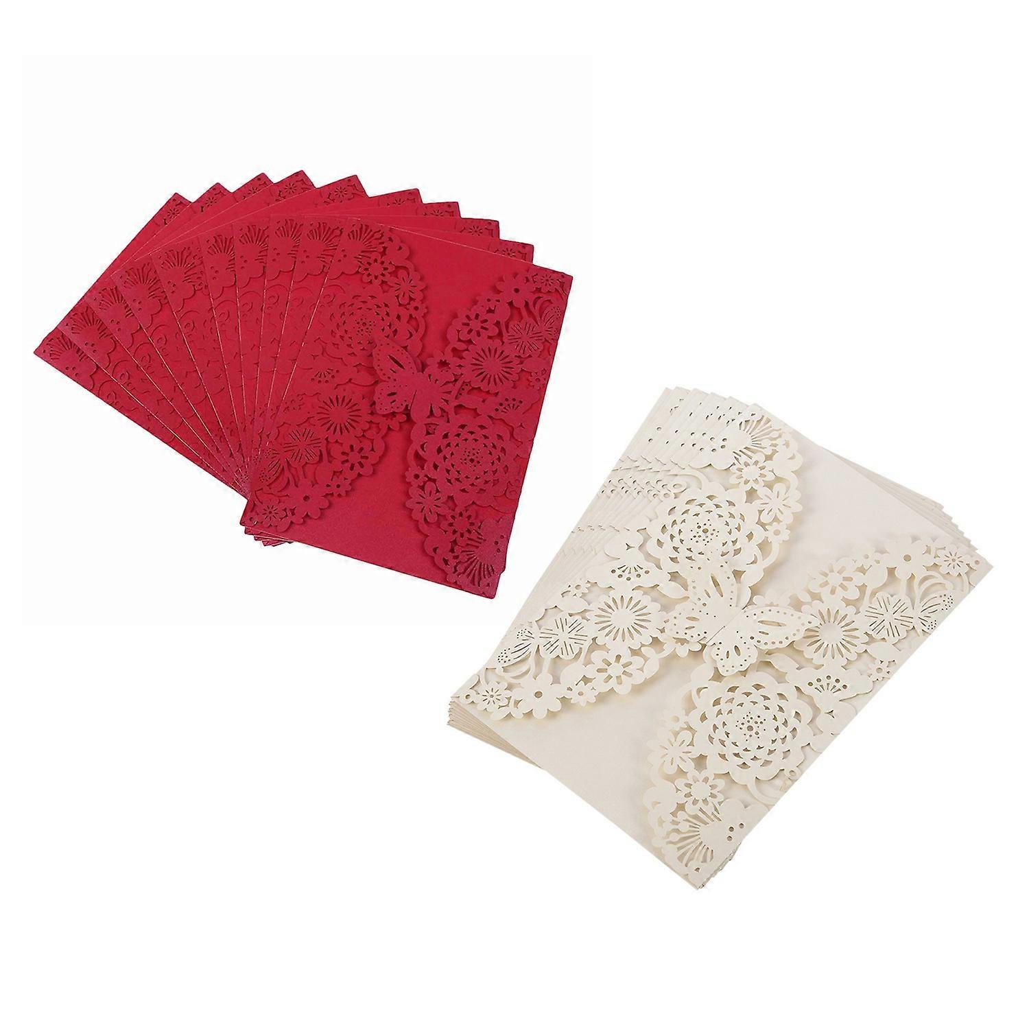 20Pcs Carved Butterflies Romantic Wedding Party Invitation Card Envelope Invitations, 10Pcs Ivory White & 10Pcs Red