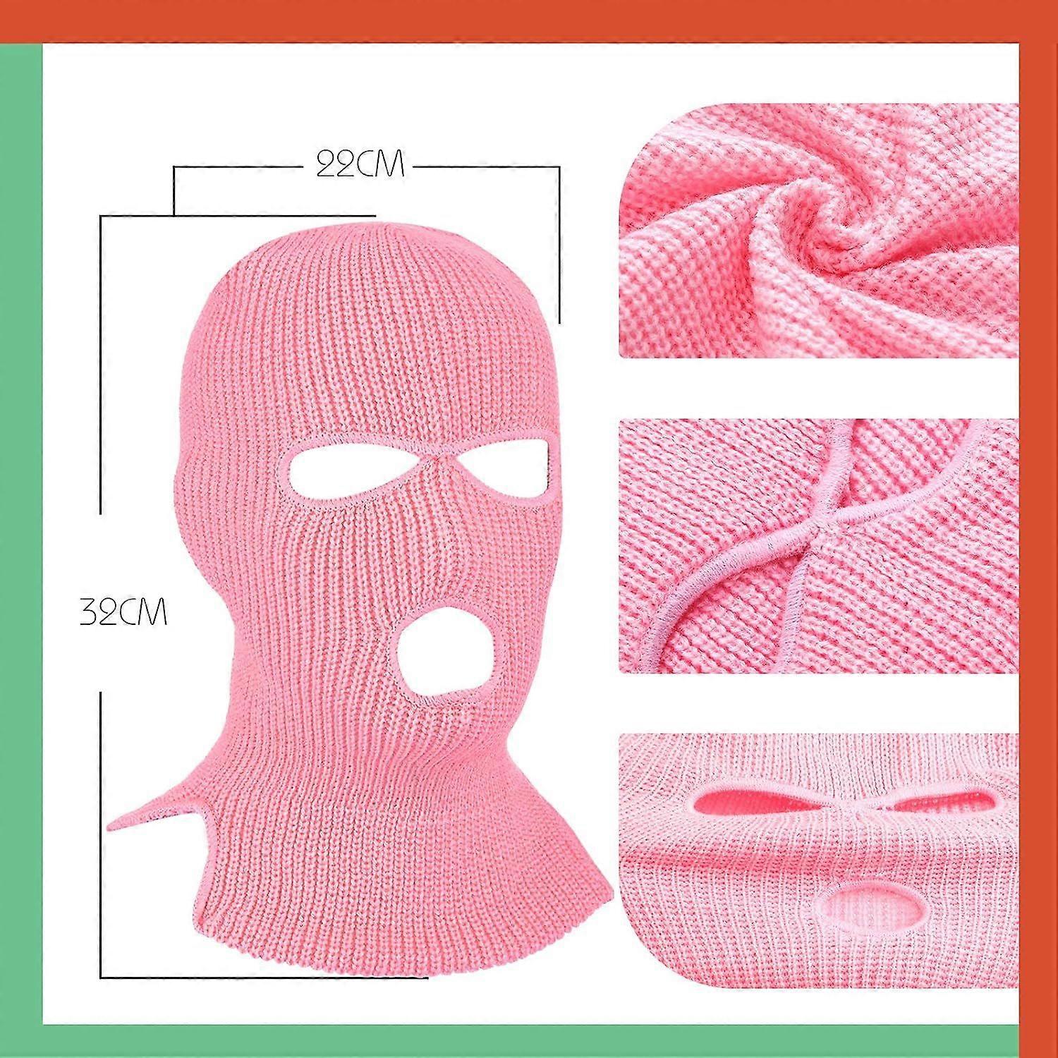 WQBLQH 3 Pieces Winter Ski Mask 3 Hole Balaclava Ski Mask Knitted Warm Pink Black Full Fac