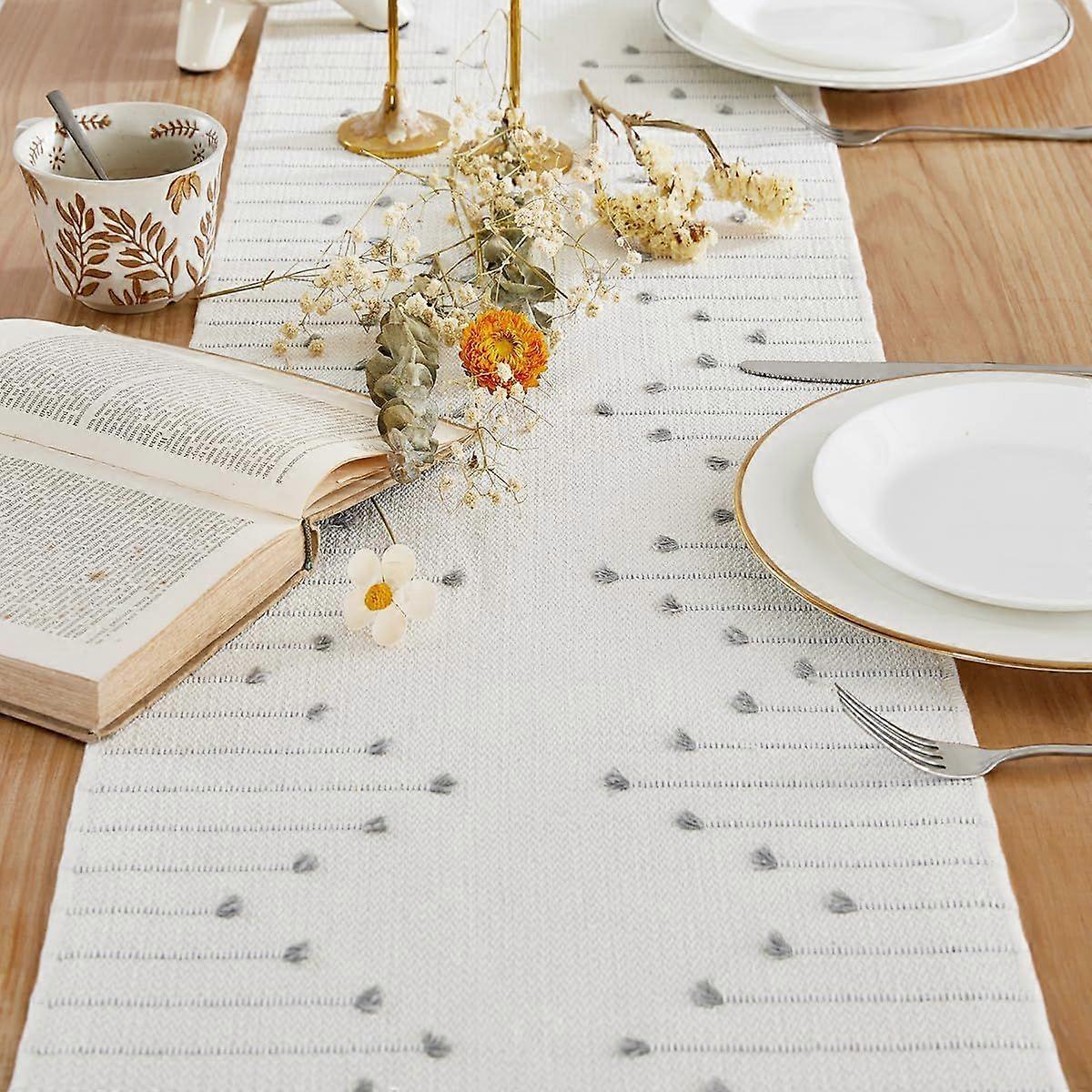Bohemian Table Runner Natural Cotton Lace Woven Table Runner Ivory 1/2 inch