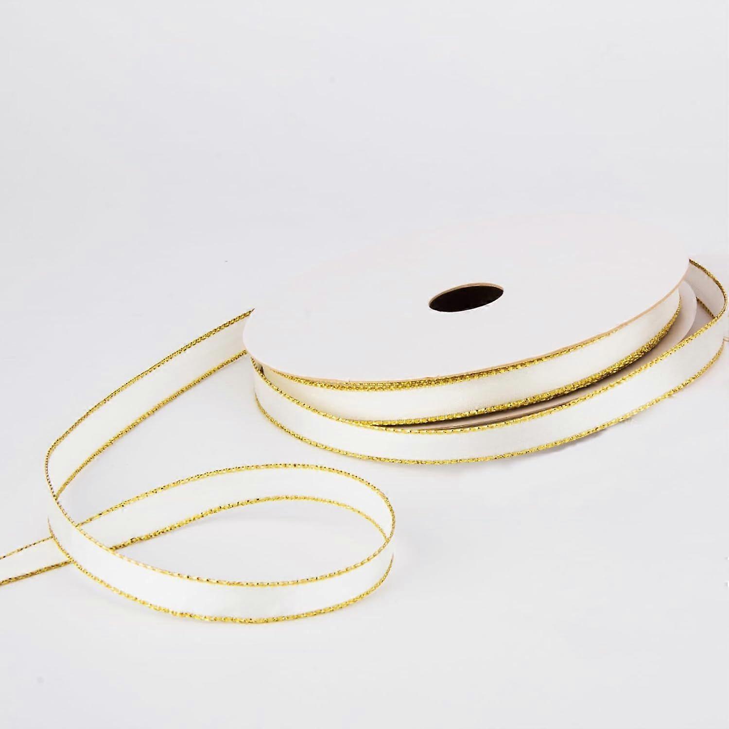 White Single Face Poly Satin Ribbon with Gold Edge for Crafts Gift Wrapping