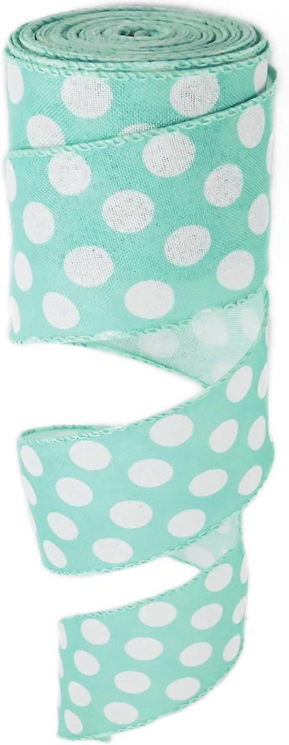 Polka Dots Wired Ribbon,2-1/2"x10 Yard,Mint Green and White Dots Craft Ribbon for Wreath E