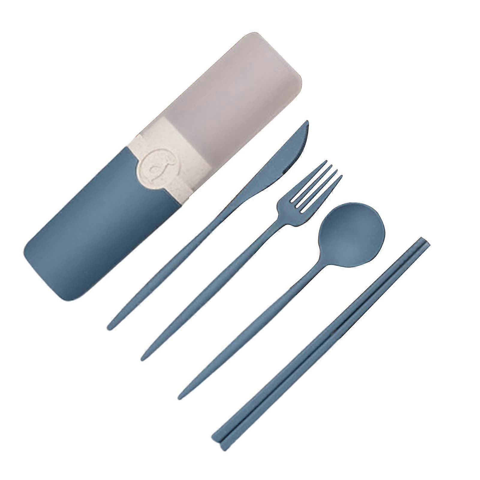 Portable 4-Piece Reusable Cutlery Set with Storage Box Handles