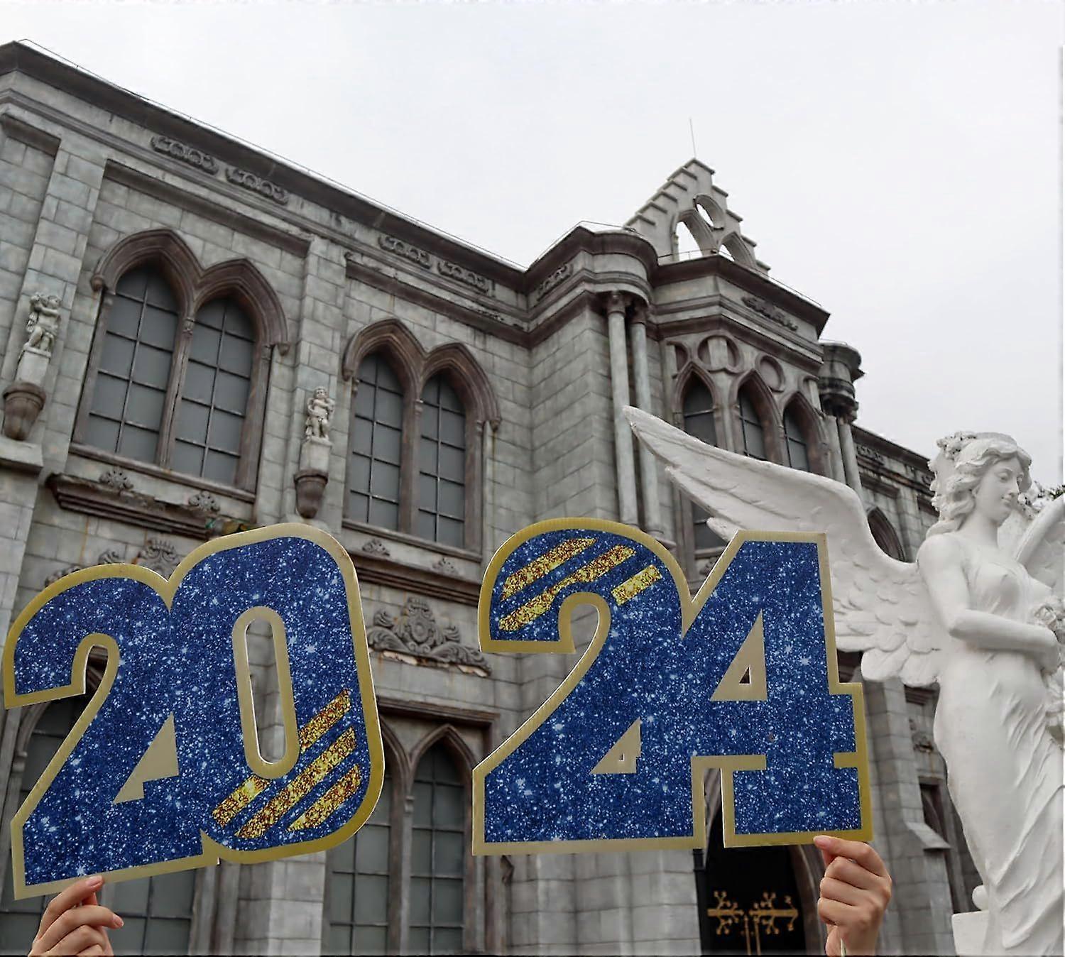 Eye-catching '2024 GRAD' Design: Celebrate the Class of 2024 with our striking '2024 GRAD' graduation yard sign in elegant black and gold. This design includes iconic elements like graduation caps, perfect for enhancing your graduation party decor.Durable & Waterproof: Crafted from sturdy corrugated plastic, our yard signs are built to last and suitable for outdoor use. Professional printing ensures they are waterproof, fade-resistant, and durable against outdoor elements.Easy Installation: Each set includes 12 letter signs and 24 stakes for effortless setup. Simply insert stakes into designated holes for quick installation in your yard, allowing you to create a vertical decorative effect with ease.Versatile Usage: These signs are ideal for outdoor yard decorations, graduation parties, handheld photo props, or wall displays, spreading the joyous message of graduation throughout your celebration.Celebrate the Class of 2024 with our graduation yard sign! Order now to showcase your pride and add a memorable touch to your festivities.