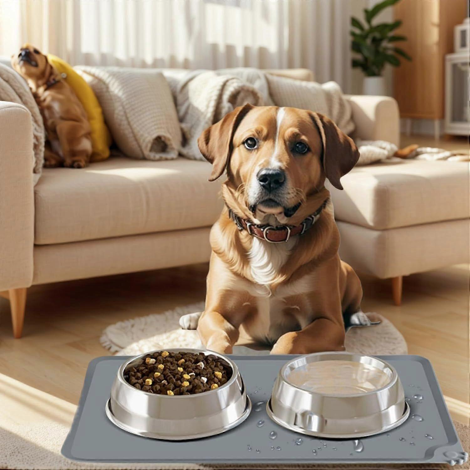 Dog Food Mat - Waterproof and Non-Slip Silicone Mat, Suitable for Dog Bowls and