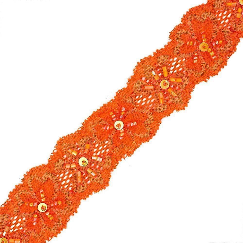 Beaded Sequin Stretched ORANGE Lace Trim, 1-1/8 Inch by 1 Yard, SEE-SL-0041-BD