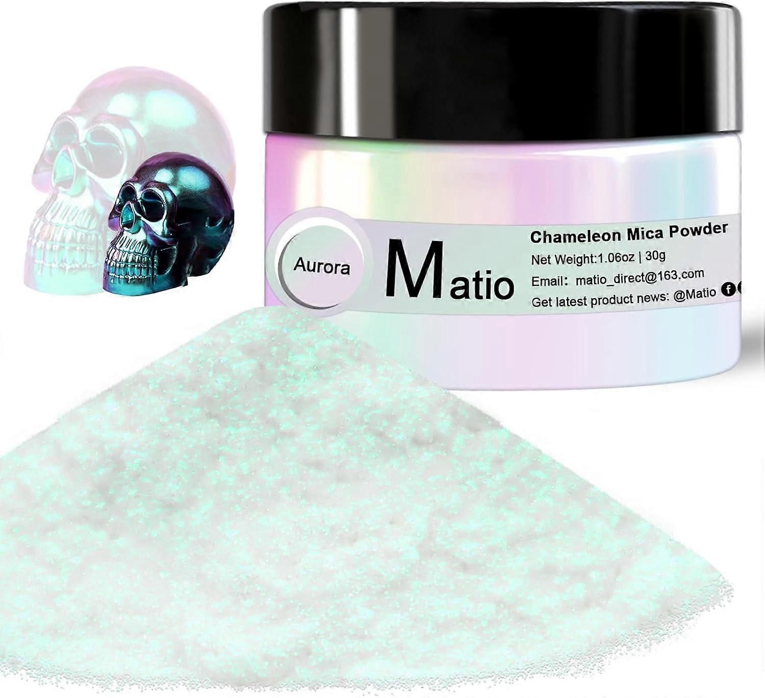 Matio Chameleon Mica Powder, 1.06oz/ 30g Aurora White Chrome Powder, Pearlescent Effect Color Shift Pigment for Resin Craft, Soap Candle Dye, Nail Ar